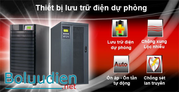 - Dòng UPS online: Các sản phẩm thuộc loại này chỉ dùng nguồn điện nhà cho việc sạc bình ắc-quy của nó mà thôi. Nguồn điện cấp ra cho thiết bị được chuyển từ nguồn điện một chiều của bình ắc-quy thành nguồn điện xoay chiều thông qua một mạch chuyển. Loại UPS này có độ ổn định cao nhất, nhưng giá thành lại cao hơn các dòng khác đến bốn lần.